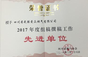 武胜太阳成集团tyc234cc燃气公司获省燃协表彰