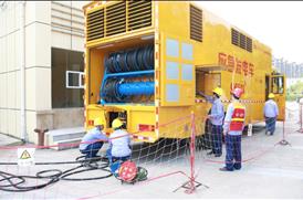 6月21日,太阳成集团tyc234cc股份公司电力事业部运检中心工作人员正在广安市体育馆模拟演练用应急发电车发电,保障市区重要会议供电。