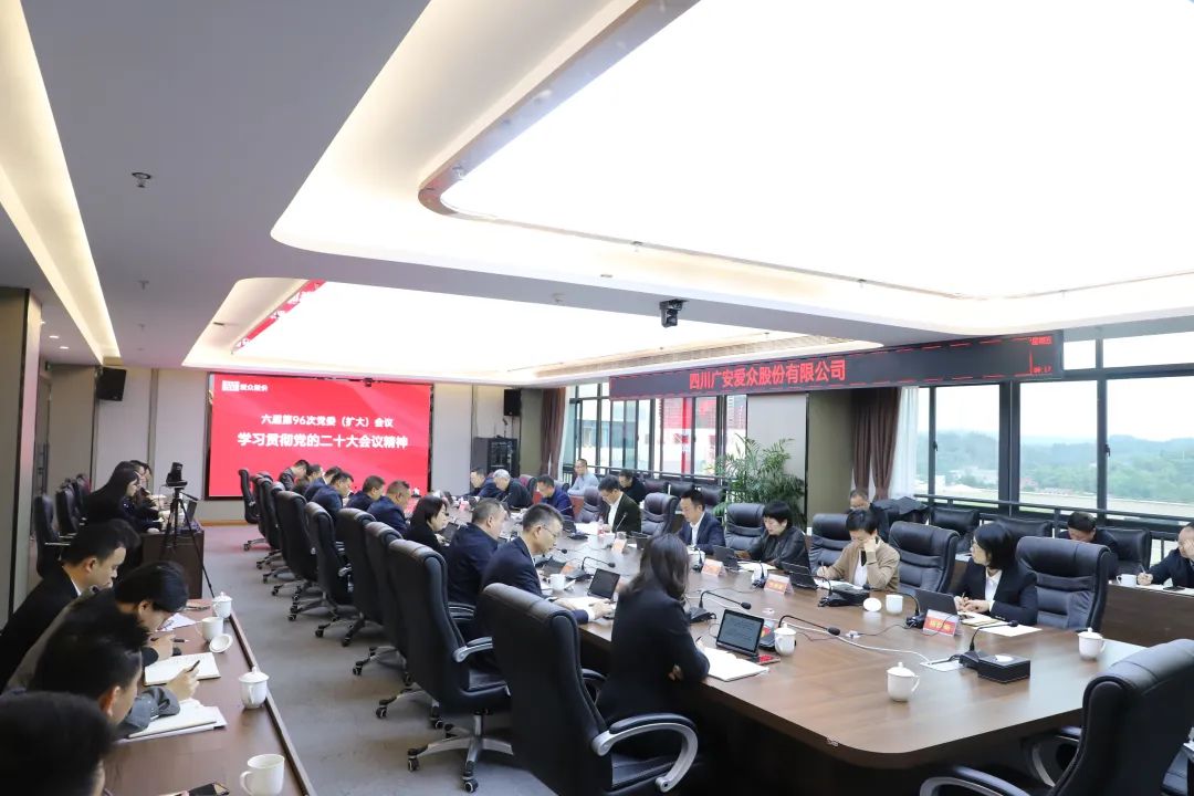 10月28日,广安太阳成集团tyc234cc股份公司召开党委(扩大)会,专题传达学习党的二十大精神,提出贯彻落实措施。公司党委书记、董事长、总经理余正军主持会议并讲话。