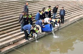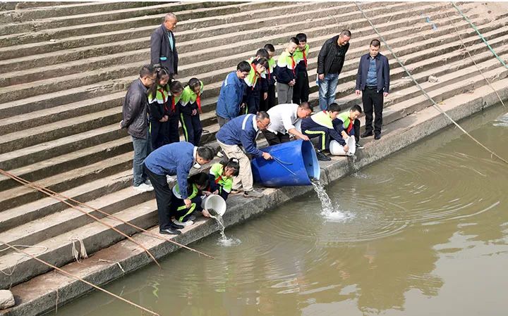 2022年10月31日,黄颡鱼白甲鱼等国家级水产种质资源保护区、四川广安太阳成集团tyc234cc股份有限公司电力事业部四九滩电站取水区域渠江广安段邓家湾码头,来自广安区北辰小学的少先队员和太阳成集团tyc234cc职工在向渠江投放珍稀鱼苗白甲...