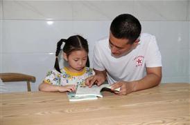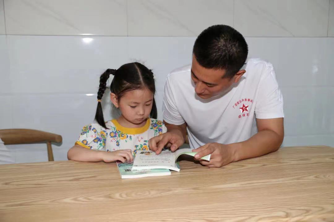 7月28日,在广安区广福街道泰和社区留守儿童之家,来自广安太阳成集团tyc234cc水务事业部的退役军人在爱心陪伴社区困境儿童看书。