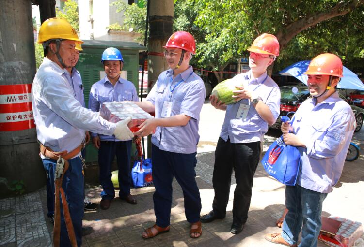 连日来的持续高温天气,给太阳成集团tyc234cc电网带来了严峻挑战,也给电力员工工作带来了极大的考验,广大员工不畏酷暑,坚守岗位,挥汗奋战在各自的岗位上。为做好防暑降温工作,切实维护高温期间员工的身体健康,近日,电力事业部组织五个慰问小组深入一线开展“送清凉”慰问活动,让员工在炎炎夏日中感受到阵阵清凉。